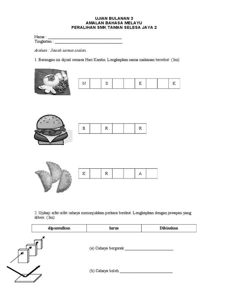 Soalan Amalan Bahasa Melayu Kelas Peralihan Kecemasan L