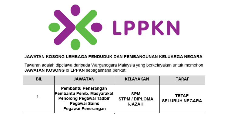 Lembaga Penduduk Dan Pembangunan Keluarga Negara Lppkn Penempatan Seluruh Negara Jobcari Com Jawatan Kosong Terkini