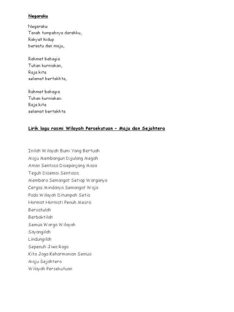 Lirik Lagu Wilayah Persekutuan 1 Pdf