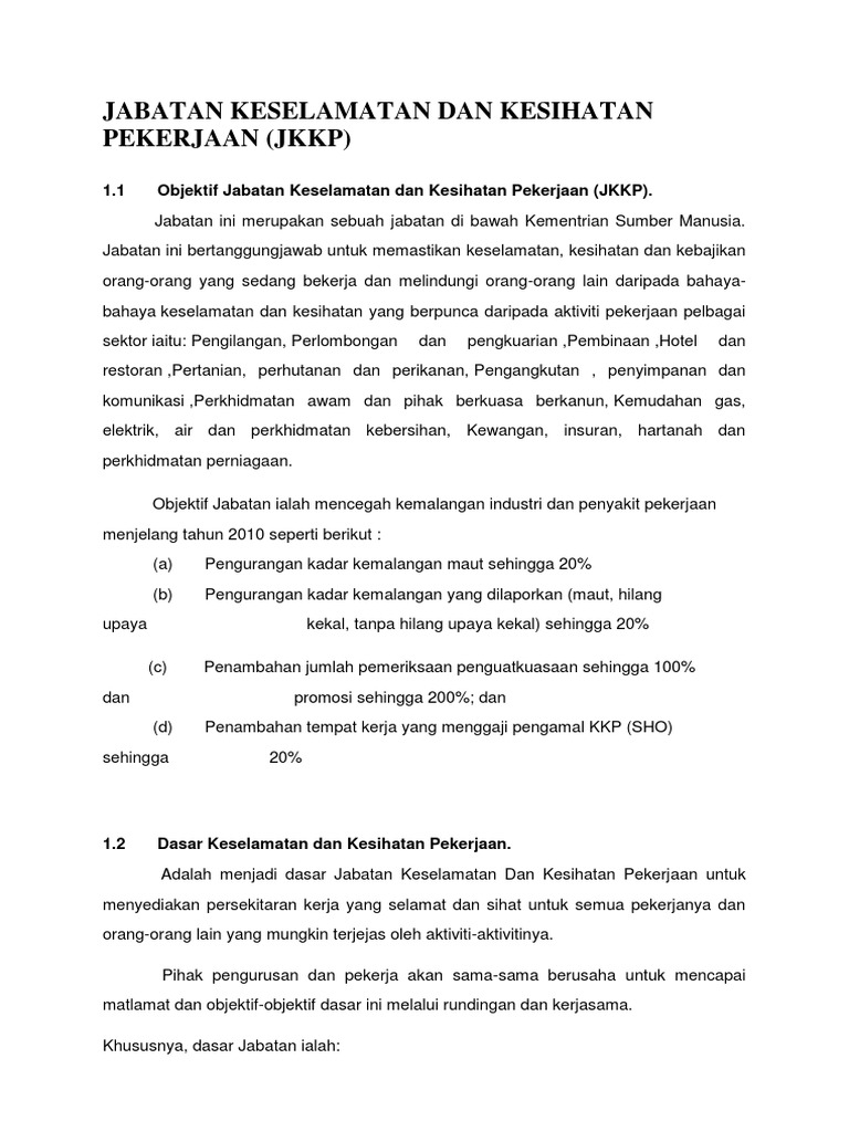 Jabatan Keselamatan Dan Kesihatan Pekerjaan Malaysia Jkk By Jures35wamina Issuu