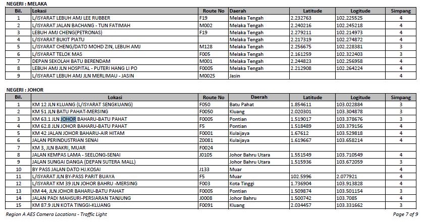 Km 7 jalan maharajalela teluk intan arah ke bagan datoh 5. Km256 1 lebuhraya pantai timur 2. Berikut adalah senarai 30 lokasi kamera aes yang diumumkan pihak jpj. Km 26 jalan ipoh kuala kangsar persimpangan kg kerdah 3.