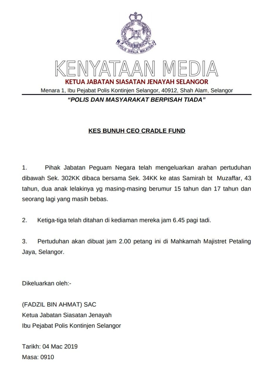 Bfm News On Twitter The Wife Of The Late Cradle Fund Ceo Nazrin Hassan And Two Teenagers Are Expected To Be Charged With His Murder This Afternoon Samirah Muzaffarvand The Two Teenagers