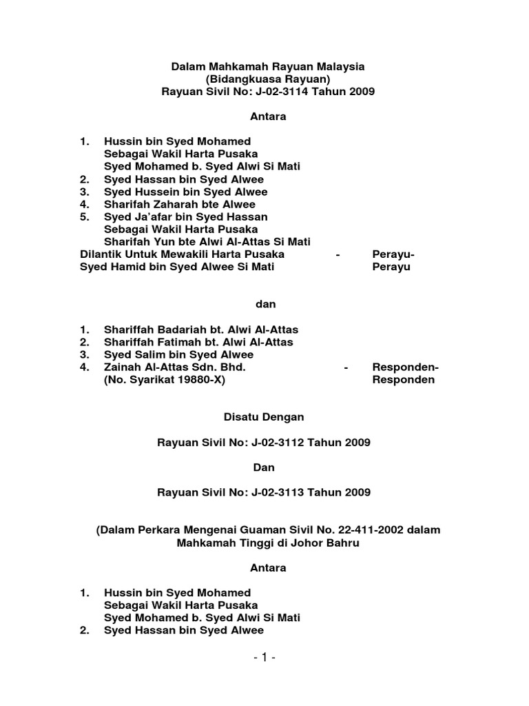 Dalam Mahkamah Tinggi Malaya Di Johor Bahru Dalam