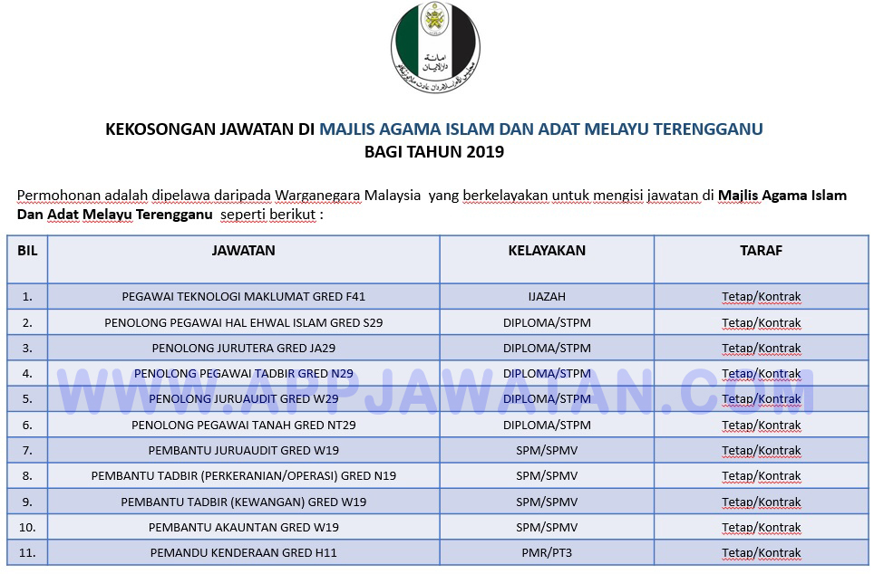 Jawatan Kosong Terkini Di Majlis Agama Islam Dan Adat Melayu Terengganu Appjawatan Malaysia