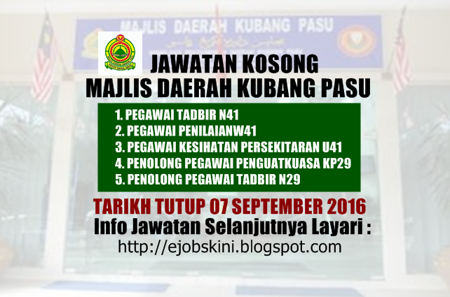 Jawatan Kosong Terbaru Pelbagai Bidang Dan Gred Di Majlis Daerah Kubang Pasu Mdkp 07 Sept 2016 Jobcari Com Jawatan Kosong Terkini