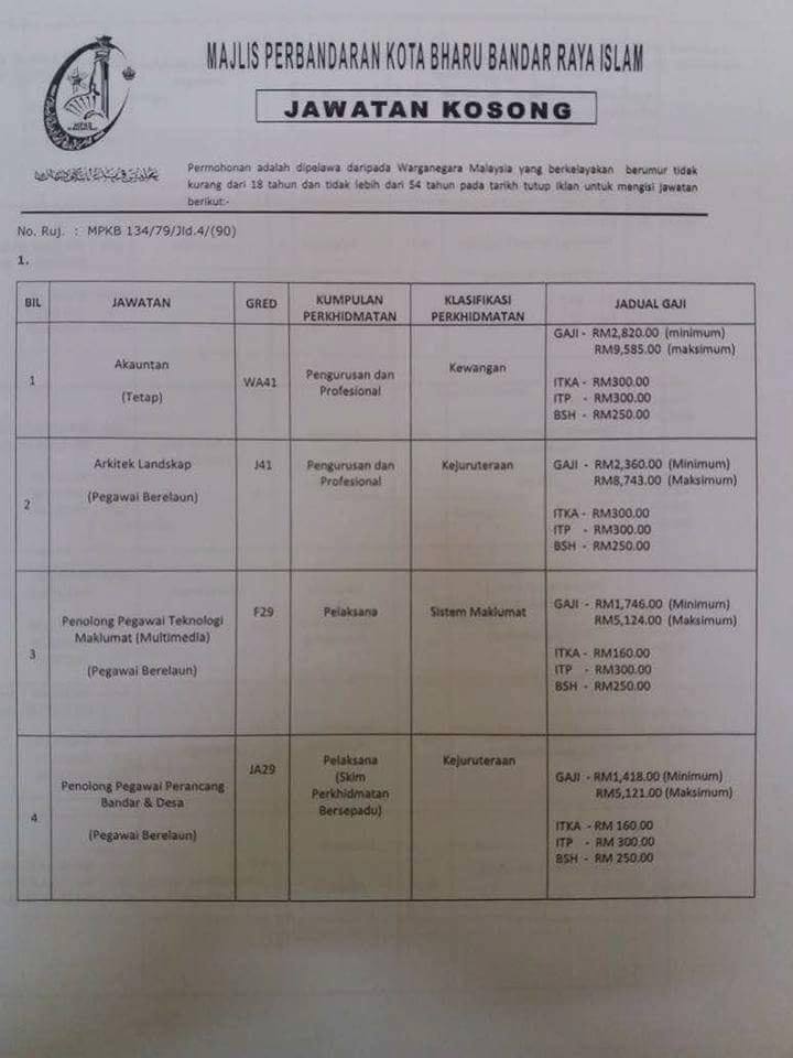 Jawatan Kosong Majlis Perbandaran Kota Bharu Bandar Raya Islam 15 Mac 2018 Appjawatan Malaysia