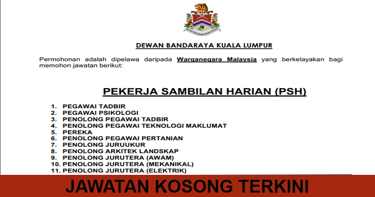 Kekosongan Terkini Di Dewan Bandaraya Kuala Lumpur Dbkl Jobkini Com Jawatan Kosong Swasta Glc Dan Kerajaan Terkini