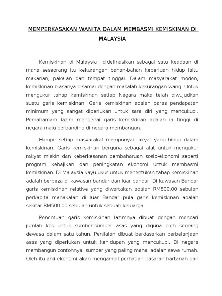 Memperkasakan Wanita Dalam Membasmi Kemiskinan Di Malaysia