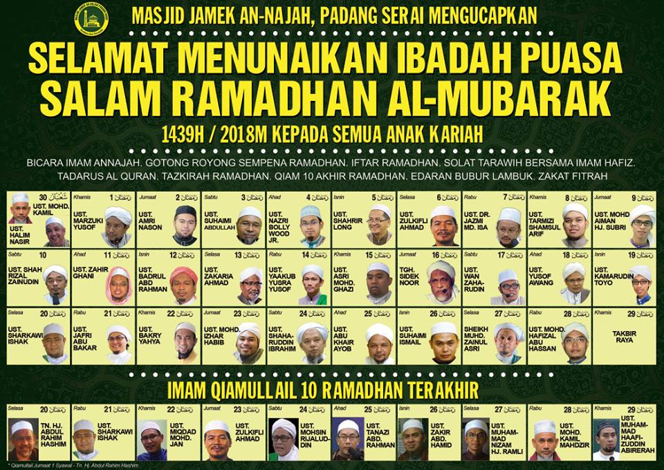 Hebahan Masjid Jadual Tazkirah Ramadhan Masjid Jamek An Najah Padang Serai Ramadhan 1439h Mei Jun 2018