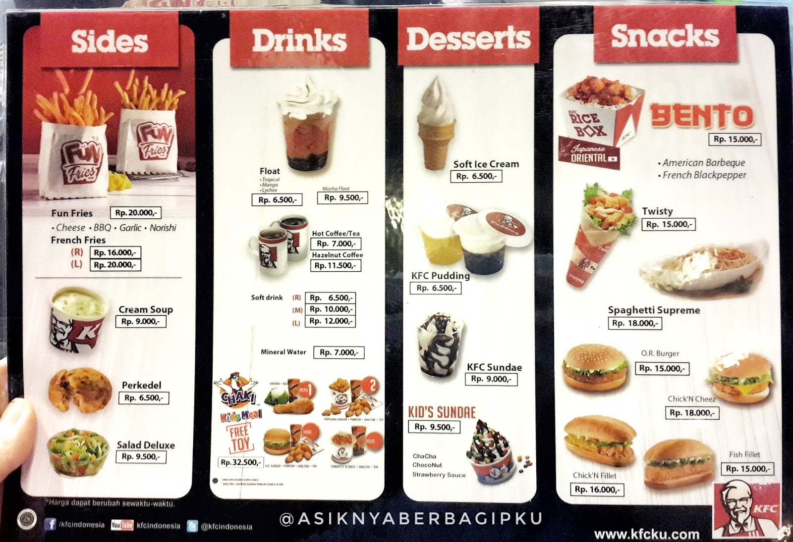 Kfc Menu Menu For Kfc Kemang Jakarta
