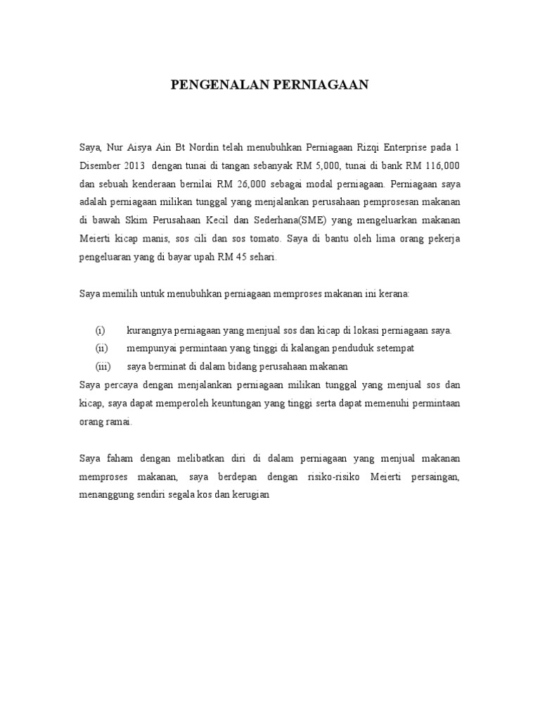 Doc Contoh Kertas Kerja Rancangan Perniagaan Shahrin Hamid Academia Edu