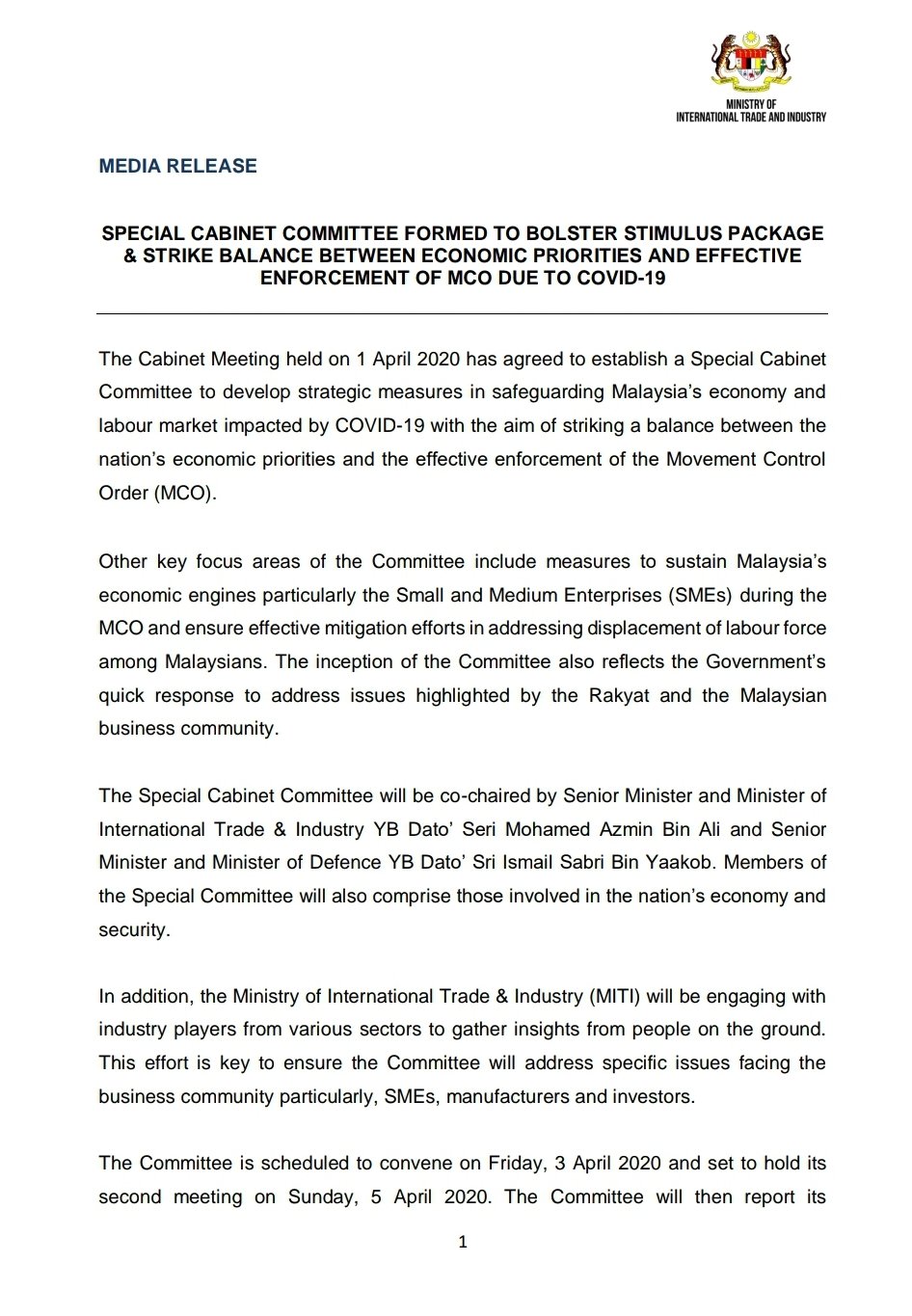 Miti Malaysia On Twitter Read Our Latest Press Release Special Cabinet Committee Formed To Bolster Stimulus Package Strike Balance Between Economic Priorities And Effective Enforcement Of Mco Due To Covid 19 Click