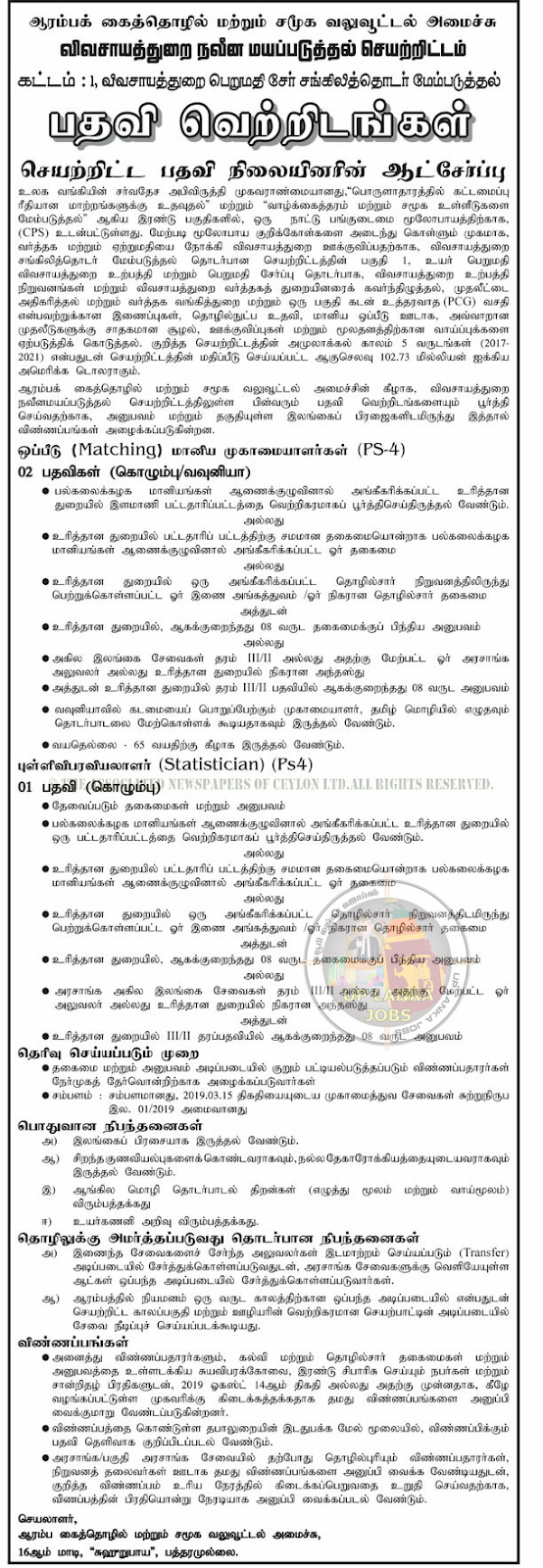 Matching Grant Manager Statistician Ministry Of Primary Industries Social Empowerment Up Lanka Jobs