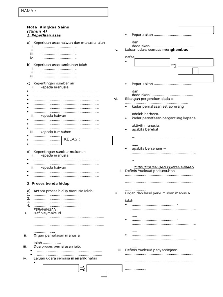 Nota Sains Tahun 4 Unit 2 Manusia Chang Tun Kuet