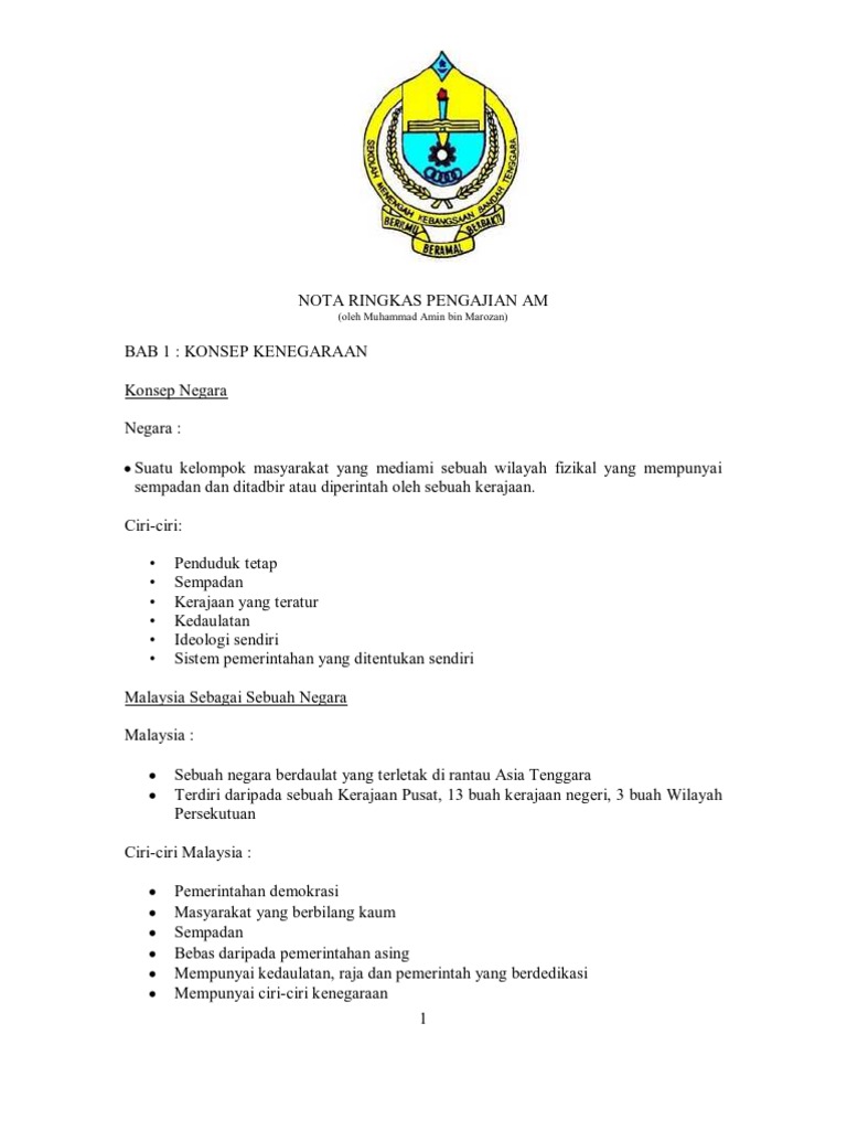 Nota Ringkas Pengajian Am Penggal 1 S1