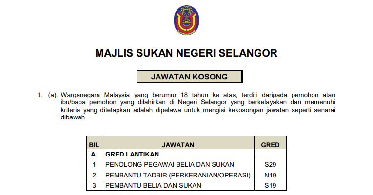 Jawatan Kosong Di Majlis Sukan Negeri Selangor Pembant Tadbir Penolong Pegawai Pembantu Jobcari Com Jawatan Kosong Terkini