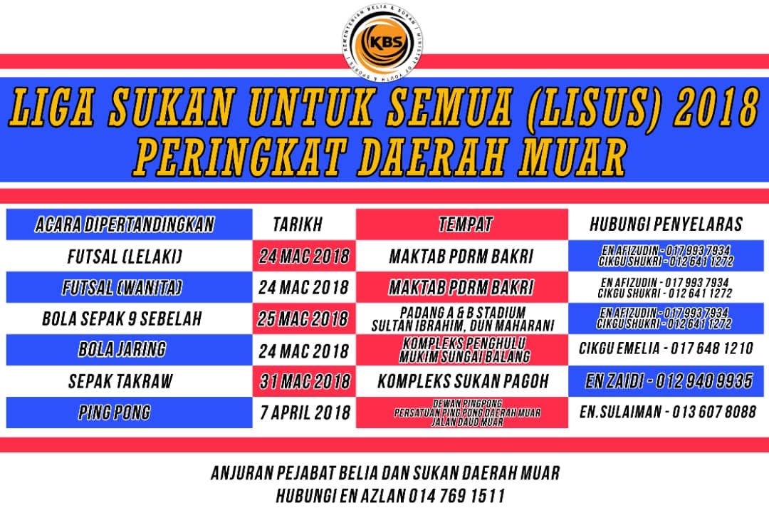 Pbsd Muar On Twitter Liga Sukan Untuk Semua Lisus Peringkat Daerah Muar 2018