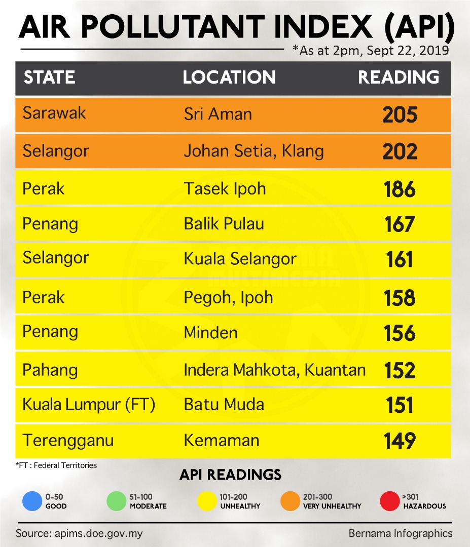 Bernama 10 Locations With High Api Readings As At 2 Pm Sept 22 2019