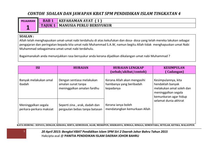 Modul Latihan Topikal Pt3 Pendidikan Islam Lengkap Dengan Jawapan
