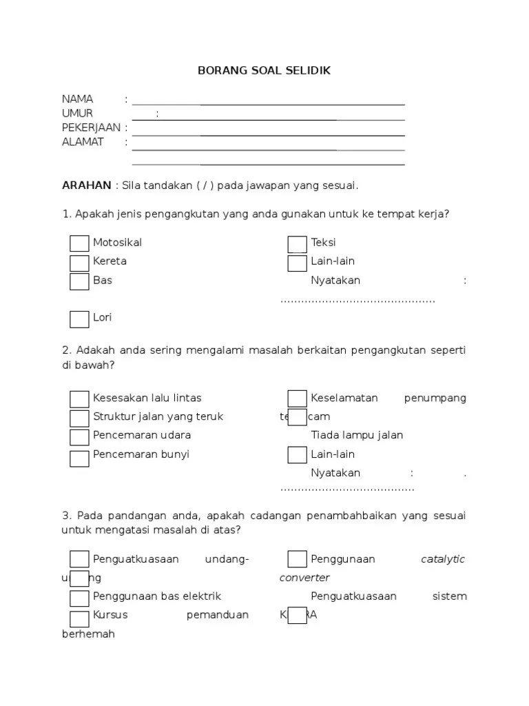 Contoh Borang Soal Selidik Sistem Pengangkutan Dawn Cute766