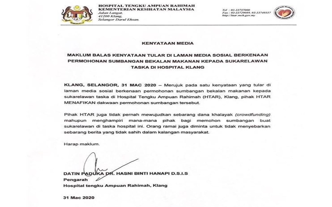 Dr Faizal Bin Mat Arifin Salam Aidilfitri Terima Kasih Kepada Datin Paduka Dr Hasni Binti Hanapi Pengarah Hospital Tengku Ampuan Rahimah Htar Klang Facebook